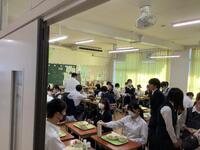 生徒たちで決めたスケジュールで給食の喫食方法が班に移行しました。楽しそうに食しています。生徒主体かつ通常生活に戻る幸せ校長として感じています。生徒先生ありがとう。