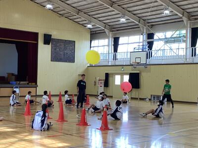 本日も東京ヴェルディの方にお越しいただき、1年生の後半クラスが取り組んでいます。楽しくパラスポーツを体験できる機会は貴重です。