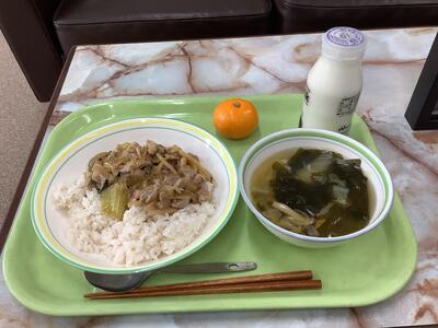 ルーロー飯、若布スープ、みかん、牛乳です。