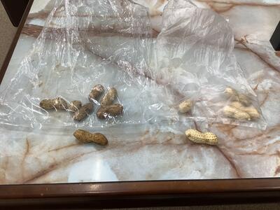 収穫した落花生をおすそわけしていただきました。濡れたままのは茹でて、乾干しいしたものは炒って食したいと思います。感想は後ほど。5組さん、いつもありがとう!