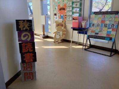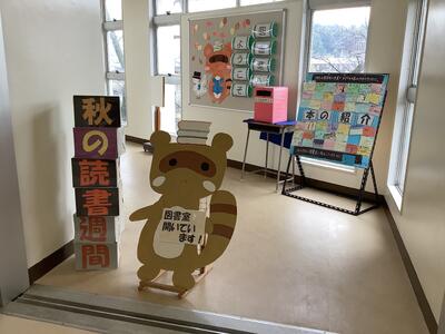 秋の読書週間!司書さんと図書委員のアイデア満載。昨日の来館者は増えたそうです。