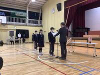 和田中生の3名が文化スポーツ部門で顕著な成績を収め、市教委から表彰していただきました。授与の所作も立派でした。