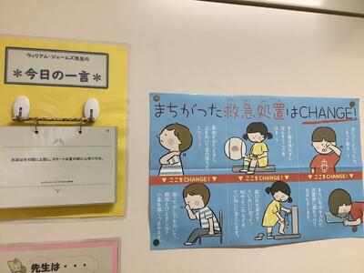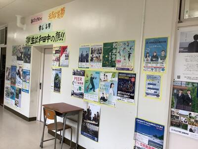 掲示物にも、そこから発せられるメッセージ、そこに掲示した意図がはっきりと伝わるものが多いです。また、スクールサポートスタッフの方が、時期に合わせて貼り替えてくださっています。
