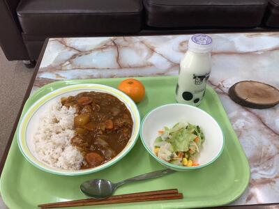 ポークカレーライス、コールスロー、みかん、牛乳です。