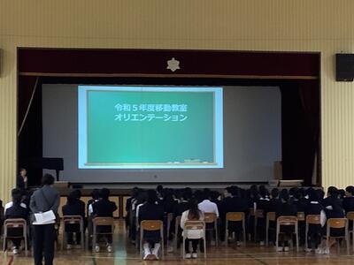 最終日は1年生の朝の会の様子の写真です。テスト後にスキー移動教室のガイダンスがある連絡を受け、それを励みにテストも頑張れそうですね。