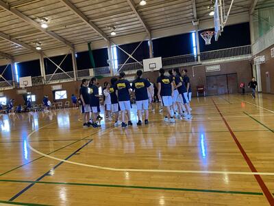 会場の電波が悪く、その都度アップできませんでしたが、71-37で勝利しました。ダブルスコアに生徒たちも驚いていました。決勝トーナメントも楽しみです。