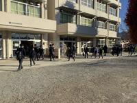 空気は冷たいですが、日差しが暖かく気持ちの良い最終日の登校の様子です。