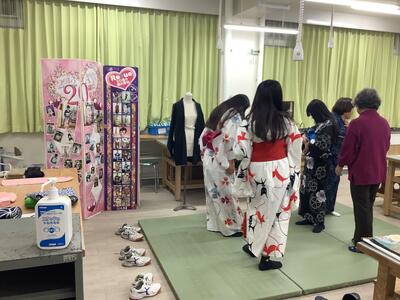 前回になかった「着付け」プログラム。綺麗に着飾れるといいです。