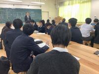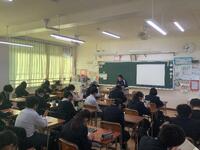 生徒会朝礼の後に、学年集会を行い、ふれあい月間のまとめ、言葉の使い方、言葉を受け取る相手への配慮について学年主任から話がありました。その後、校長も時間をいただき、校長としてではなく学年の仲間としての前置きをして、厳し目な話をしました。「現在、正しくない言動が見受けられる。」「自分の家の中で過ごすつもりで、居心地良くして欲しい」そして最後に約束しました。「自分がされた嫌なことは相手に行わない」「相手が嫌がったことは2度としない(良かれと思っても相手が嫌に思うことはあるから、一度までは許されるかもしれない)」です。短時間で想いを伝える話術に校長自身が反省する点は残りましたが、生徒たちは、よーく聴いてくれました。感謝です。