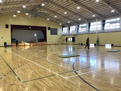 昨日の1日目をベスト32に勝ち残り、2日目の女子選手1名を応援に来ました。会場校の前校長として改めて立派な体育館に感動してます。