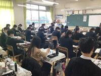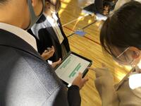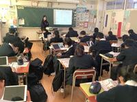 タブレットを使った提案授業に全教員で参加して学びを深めました。午前で生徒を下校させた日にも先生方は頑張っています!
