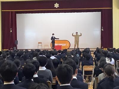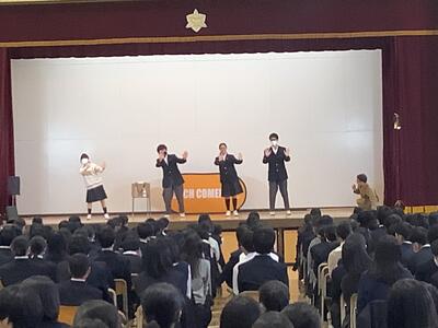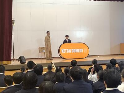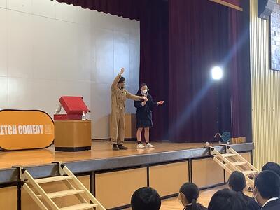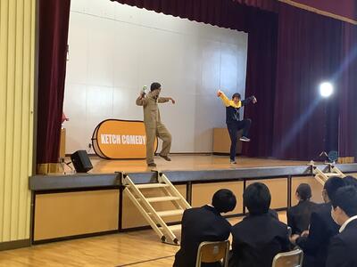 東京都の取り組みで昨年のジャングルポケットに引き続き、ketchさんのパントマイムを堪能しました。後半は夢を叶えるお話とパントマイム体験をしました。代表生徒の挑戦、選ばれた教員のアドリブの演技も最高でした。全校の笑顔が溢れたこと間違いなし!