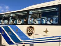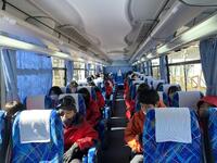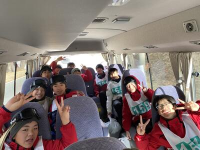 バスでゲレンデは向かっているところです。やる気を感じます。