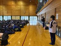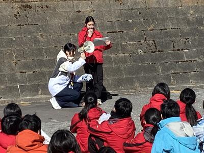 様子の写真を撮り忘れてしまいました。今日の訓練は、昼休み中の地震で職員室から出火、よって中央階段が使えないという設定です。自分のいる位置から判断し、西階段と東西の非常階段を選んで避難しました。前回の課題を基に、落ち着いて迅速な避難を自力でできたことが分かる雰囲気でした。副校長からは、元日の羽田の事故で1人の犠牲者も出さなかった企業努力と乗客の整った避難行動に学べることがあると話しました。