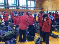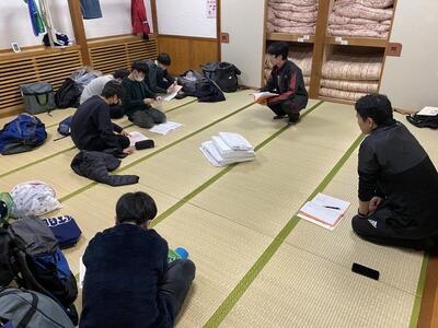 予定変更の話をしっかり聞きメモを取る姿が素晴らしい!食事係と担当の先生とすごく仲良くいい雰囲気で打ち合わせいてる様子が羨ましいです。残りの行程をみんなで頑張るために「やるぞ、やるぞ、やるぞ!」の声掛けで締めました!