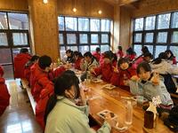 スキーが楽しかった!と司会が!みんなに確認して、いただきます。
