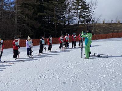 スキー場に向かって出発します!午前午後6時間のレッスンです。