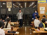 食事係がご馳走様をしましたが、謎かけをしてくれ、楽しく食事が終えられました。その際の生徒と先生の掛け合いも漫才並みに笑えた!こんな雰囲気は大好きです!