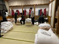 朝礼前に寝具の片付け。3日目の朝の寝起きは幾分かスローペース。