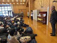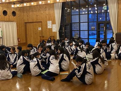 生徒主体の入所式、元気な司会、始めた終わりの言葉担当もしっかり準備してきたことがわかります。素晴らしいスタートです。今日帰る落合中の校長先生からゲレンデは最高のコンディションになったと連絡があり、行いの良い和田中生だと思いました!