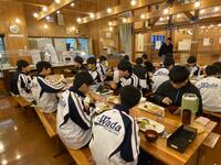 食事係のいただきますの発声で、この後のレクレーションを盛り上げるためにもたくさん食べます。