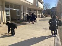 日差しはありますが、冷たい強い風の中の登校になりましたが、元気にあいさつしています。