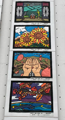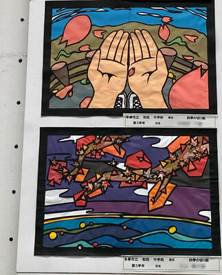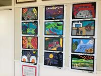 2階に掲示してある美術作品です。市の美術展に出品されたものだけあって、その精巧さや芸術性に感激してしまいます。ご来校の際は、ぜひ近くでご覧ください。