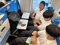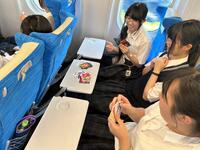 ゲームしたり、会計報告をまとめたり、新幹線の中を有意義に過ごしています。
