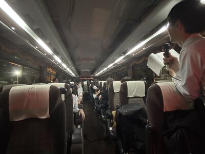 新横浜で下車して、バスに乗り込み出発します。予定よりほんの少し早い出発ができます!