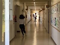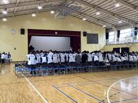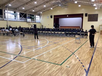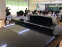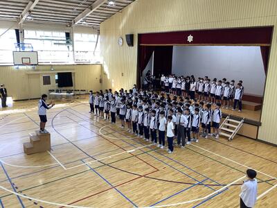 バレーボールの授業ですが、今まで以上に楽しく動きも活発に。教育委員会の支援と用務さん作業で、滑りやすかったフロアのグリップ力が増して安心して動けるようになりました。教育活動の充実のために様々な方に助けられています。