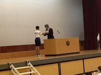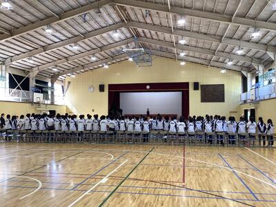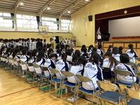 生徒会長から、これからの活動に向けた力強い挨拶がありました。また、「教師の日」を記念して、生徒の皆さんから先生方へ花束が贈呈されました。