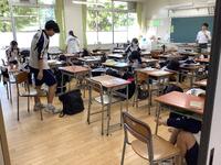 修学旅行明け、3時間目からの時差登校対応。疲れ残す中、生徒も先生も授業にしっかり取り組んでいます。
