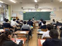 インフルエンザの感染拡大を考慮して、急遽、オンラインによる朝礼を実施しました。先生や生徒会役員等の臨機応変な対応力は、さすが和田中です。