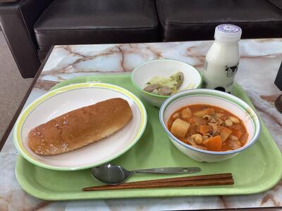 ポークビーンズ、キャベツソテー、揚げパン、牛乳です。