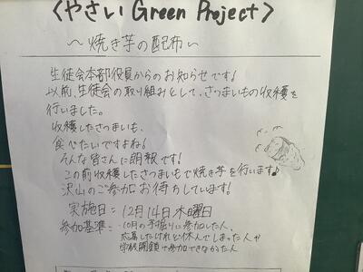 いよいよ最終。次回は焼き芋の配布になります。苗植え、お世話、収穫と関わってきた生徒が焼き芋にありつけるそうです。昼の放送で生徒会役員の説明がありましたが、素晴らしいアナウンスで校内が幸せな気分に包まれました!