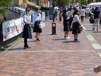 一言添えてティッシュと絆創膏を配布してます。もらっていただけなくても無視されてもめげずに声をかけ続ける有志に感激します。終わりには喜びさえ感じてくるという、とてつもない学びにつながります。