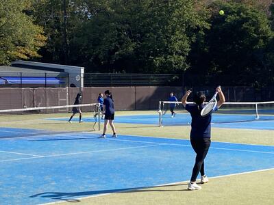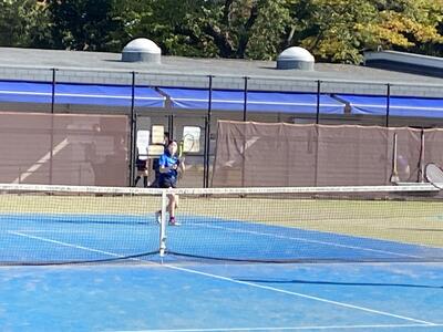 ダブルス2は残念ながら敗退。随所に良いショットご見られました。ダブルス1が戦ってます。