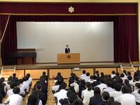 ふれあい月間ということで、「あいさつ」と「違いを受け止め、他者の気持ちを理解し、その仲間と気持ちよく過ごしてほしい」などの話をしました。