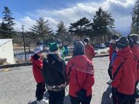 開校式前に行動が早いことをイントラの方に褒めていただきました。余った時間でブーツの履き方をレクチャーしてくださってます。