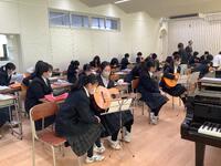 3学期の授業の説明と評価の方の方法について共有して、ギターの練習に入りました。熱心にペア学習しています。