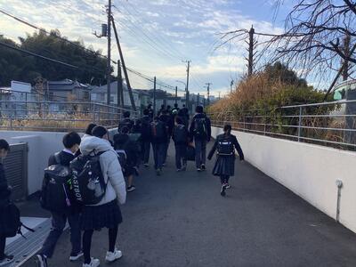 清々しい晴天の中の登校です。明日から冷え込みが厳しいそうです。