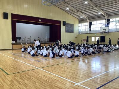 学年の先生の応援メッセージや副校長先生から3年生の主体的な素晴らしい言動へのお褒めの言葉をいただきました。最高学年がつくり出す、充実した素敵な集会が行われています。