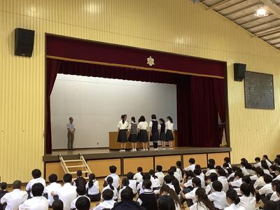 選挙管理委員から公示がありました。最後に、柔道と卓球女子団体、個人の表彰をしました。