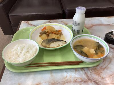 ほっけの文化干し、肉じゃが、呉汁、ご飯、牛乳です。