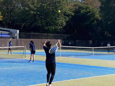 ダブルス2は残念ながら敗退。随所に良いショットご見られました。ダブルス1が戦ってます。