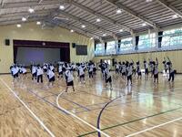 1年生の体育の授業を参観しました。オンタイムで始まり、しっかりと準備運動を行っています。体育大会の全校種目の「WA⭐︎DANCE」のステップを習得する学習でした。先生から指示を受けたり、受動画を見たりしながら多くの人が身に付けていました。当日を楽しみにしてください。