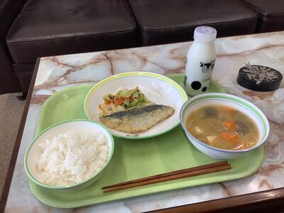 さわらの塩唐揚げ、けんちん汁、即席漬け、ご飯牛乳です。