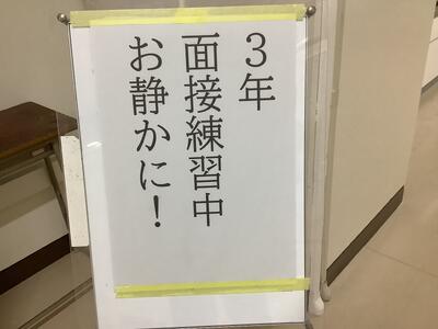 3年生の面接練習が始まっています。校長のこだわりで、3年生全員と面接させていただいています。緊張しながら真剣に取り組む姿を見ることができて幸せです。40人は終わりました。