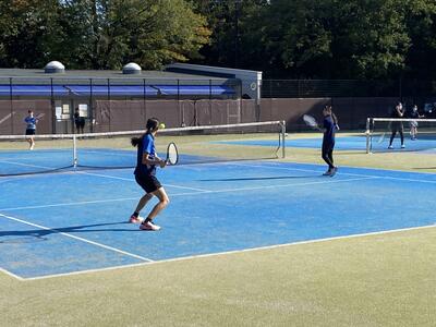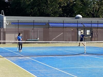 ダブルス2は残念ながら敗退。随所に良いショットご見られました。ダブルス1が戦ってます。