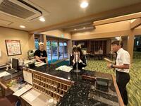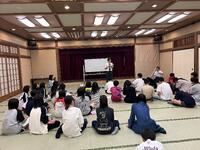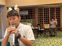 念入りな打ち合わせ、ノリノリの実行委員の生徒と踊り歌う学年の先生(宿の方からカチューシャや飾り物をお借りして)。軽快な曲と素敵な美声でみんな気持ちよく目覚めたのではないかな。2日目のスタートです!